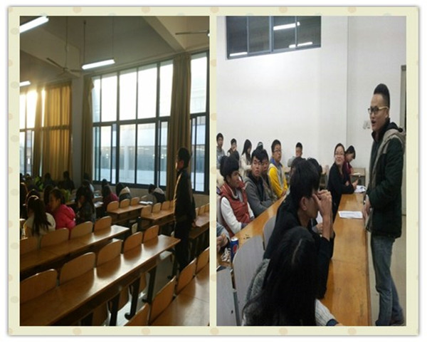 2014年11月17日,下午6:15在3-102,自律联合会指导老师潘晶给予我们以工作指导。她强调作为自律组织的一员,不仅班级上的自律委员需要在班级上发挥积极作用,每个自律联合会成员都应该在班级上发挥积极作用,并希望每个自律成员都能够积极参加活动,挑战自己,让自律每个成员变得更优秀。随后,便是自律各部长对上周工作的总结以及对以后自律工作的一些展望。