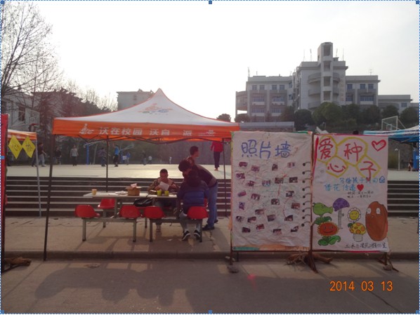 2014年3月日12日至13日,土木与建筑工程系青年志愿者协在一食堂门口开展了为期两天的“爱心种子”活动。