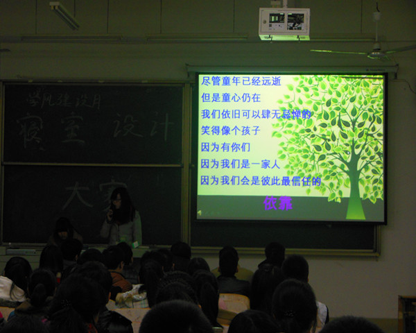 当晚上7点,在3教210,经过近一个月的装扮、改进最终入围的优秀寝室所有人员都在下面紧张地等待着,同时各年级的辅导员、各年级学生会都一同见证了此次大赛。