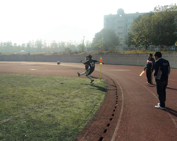 12月11日12点30,足球场上正在上演一场焦点之战——土木vs机电。本场比赛将决出参加决赛的队伍,堪称世纪之战。