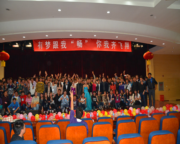 2012年11月2日,新学术报告厅欢笑一片,在这里土木12级新生举行了以“有梦跟我‘畅’,你我齐飞翔” 为主题的迎新晚会,到场的有特邀嘉宾徐双立,外语系学工办主任马勇及土木系党总支书记陈伟,系学工办主任韩玉进及系内其他老师及辅导员,他们的到来为晚会更添一份光彩。