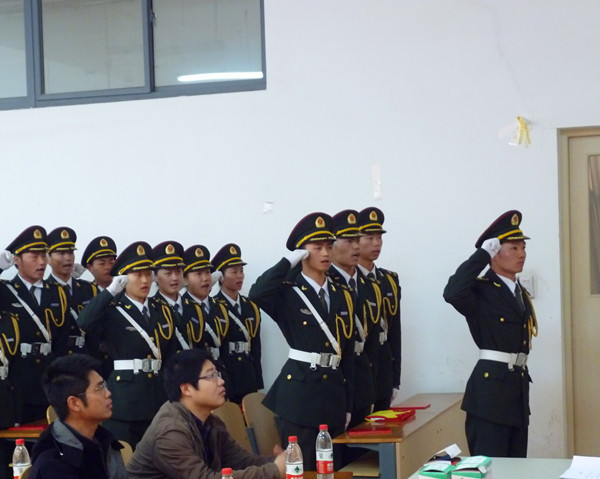 接过旗帜之后,意味着更加艰苦的训练以及更重的责任。国旗班一直以来都是学院的骄傲,相继获得许许多多嘉奖。在荣誉的背后,是汗水与严明的纪律。天将亮,夜已黑,你都能在校园内看到他们——训练的他们。有人或许会觉得他们苦、他们累,但是他们不这样认为,他们觉得这就是他们所追求的,是他们所向往的。当大家看到他们整齐有力的步伐时,发出的赞叹与掌声,这就是对他们的肯定,对他们的支持。在宣誓之后,新成员接过了鲜红的旗帜,并立下刻苦训练的誓词。土木学子,定将秉持着吃苦耐劳的精神,在今后的国旗班训练生活中为系、为院争光,得到肯定与表彰。