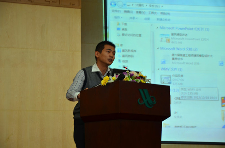 会议伊始,由校摇篮工程师指导老师及模型主负责老师李宏一一上台以富有土木特色的专业语言和相关作品视频对往届大赛的优秀学生作品进行讲解和点评。解说方面包括作品创作灵感级创意要求,各种地域历史古迹及相关审核条件等话题。伴随着他们的精彩解说及精美作品PPT的演示,富有独特魅力的二维三维图纸牢牢地吸引住土木系未来的工程师们。
