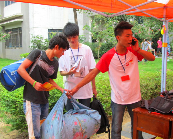 张昌唯同学是土木系12级新生,在9月8日上午刚刚在学长的引领下完成了报到注册,理应在下午休息的他,却又一次出现在土木系新生报到大本营。这又是为什么呢?原来,他是来协助学长学姐,帮助与他一样的新生进行报到注册。当大家问及他为什么会这样做的时候,他提到,既然进了土木系,就是土木系的一员,应该为土木系做些事情。同时也可以更早地认识到本班同学。而且,他自身也是刚刚完成注册,对于流程更加清晰,也能更好地带领同级的同学们完成注册。