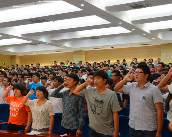 9月26日晚的学术报告厅座无虚席,土木系12级新生齐聚一堂,参加了土木系举办的心理健康讲座、入学教育以及新生介绍会。新生介绍会之前,土木系11级团学联副书记曹梦琳带领着新生进行了庄严的成人宣誓。