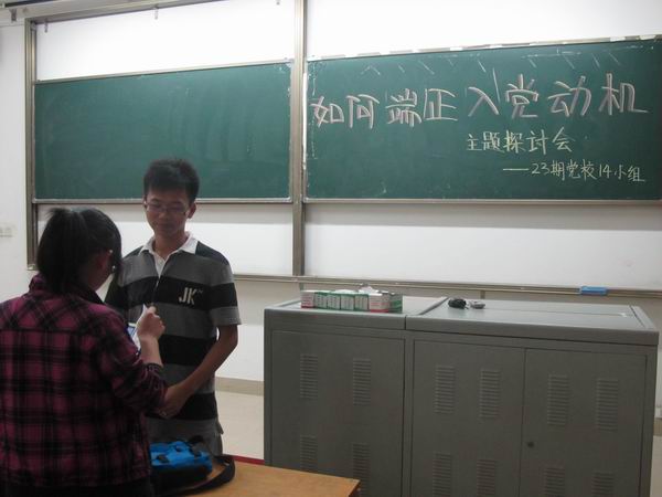 20日晚点名之后,党校23期14小组在2教207就“端正入党动机和党课实践活动的开展”进行了一场积极的讨论。
