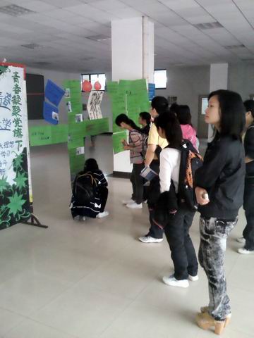 2012年5月24日星期四晚上,23期党校14组经过深思熟虑,在二教大厅展出了我们全体成员所收集的大四学长、学姐们在大学四年中最遗憾的事,以及曾经在大一许下的那些变成泡影了的心愿。每一张卡纸上都是一个真诚的告诫,记下了他们的遗憾。留下了对我们的祝福,大多数卡片上都贴上了他们的照片,用他们最真诚的微笑展现着他们对未来的美好憧憬,毕竟走出大学他们的另一段人生也才刚刚开始。但是人生也不只是遗憾,有些心愿还是实现了的,为了找出一个对比,我们全组也收集了很多的大一的卡纸,与此不同的是我们记下了的是他们的心愿,面对那么纯洁的心愿,每个人都是那么有斗志,有活力,也贴上了他们的照片,用带着阳光的微笑诠释着“我能行”行对这四年充满了希望,大学四年本身就应该是这样的。