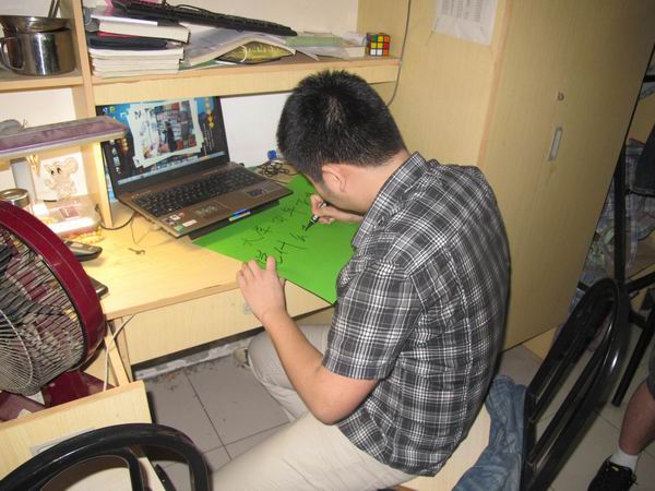 活动中我们为了形成鲜明的对比,用五颜六色的卡纸记载着大一的梦想,摆成一个“奋”字,用略显沉稳淡定的绿色卡纸记载着大四的遗憾拼成一个“斗”字。组成奋斗让人一目了然。其余的卡纸我们就将其填充起来,形成一堵墙。中间就展示了我们独具特色的海报,和一幅画着“竹子”的图彰显着那高风亮节的气节和坚定不一的性格。