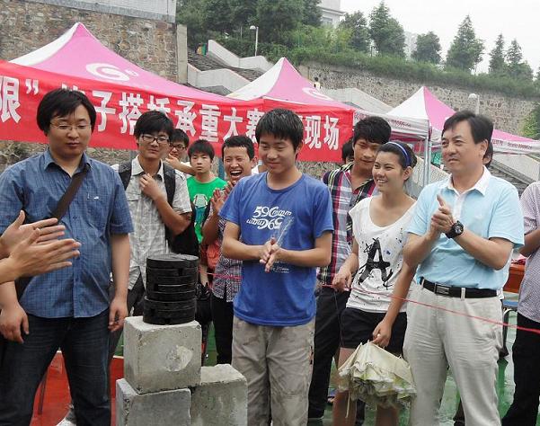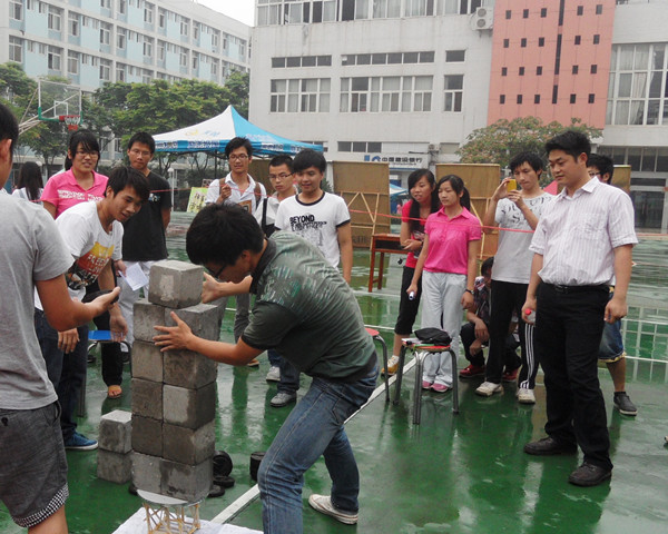 2012年6月4日中午12点20,由土木与建筑工程系团学联学习部主办的首届筷子搭桥承重大赛决赛在一食堂门口篮球场如期开展。