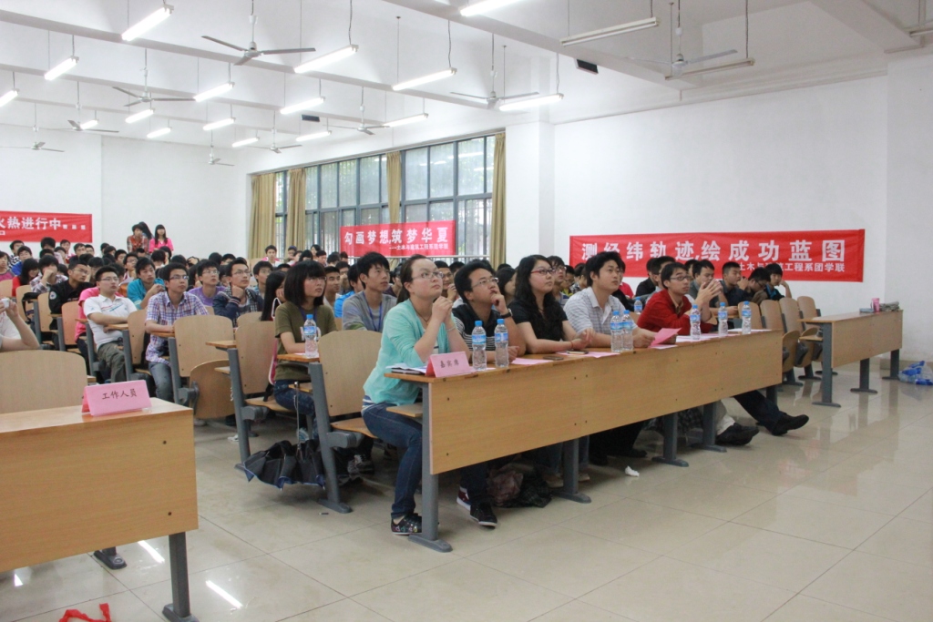 据悉,为迎接本届科技文化节,土木系科技部、学习部及记者团分别策划了“筷子搭桥承重大赛”、“AutoCAD制图竞赛”、“‘魅力青春 缤纷华夏’PPT制作与演讲大赛”和“测量大赛”等四项特色竞赛活动,同时在当天设立了报名点,为各系参赛者详述比赛细则,此次动员大会拉开了本届科技文化节的竞技序幕。