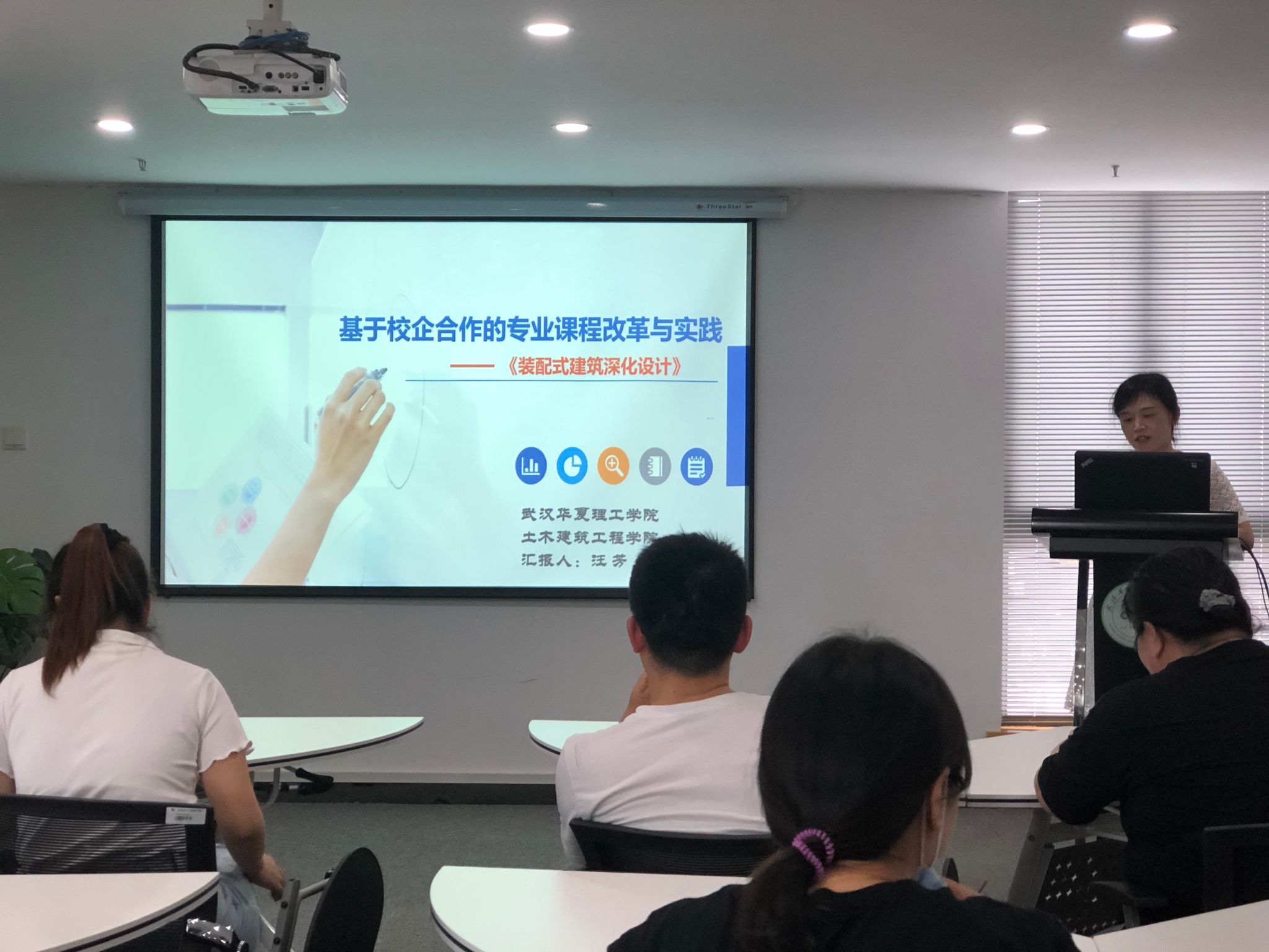 装配式混凝土建筑是国务院“绿色建筑行动方案”里中要求推广的两种建筑体系之一,是建筑业发展的新趋势。如何利用校企合作平台,让学生更好的掌握行业新知识、新理论,适应市场需求?针对以上问题,分享活动中,汪老师主要从四个方面进行讲解:课程背景、校企合作模式(企业介绍:武汉天华设计院)、课程改革模式实践和总结与展望。她重点阐述了专业课教师如何利用校企合作平台提升专业能力,理论联系实际教学,将工作室项目有机融入教学各个环节中,使教学更加贴合市场,教学内容更加符合职业需要。