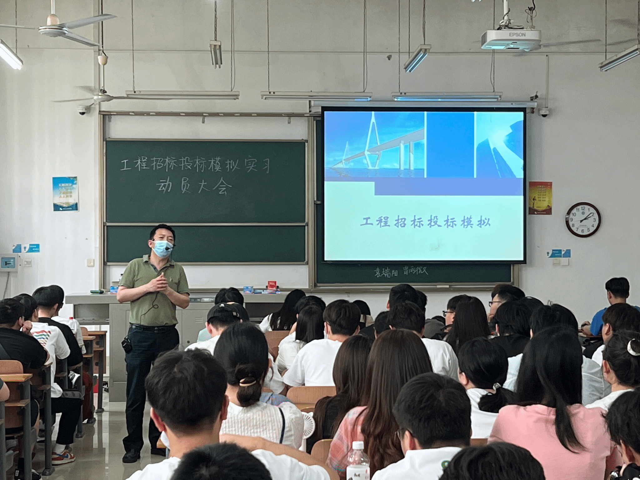 会上,柳老师首先进行了实习安全教育,详细讲解了本次实习的过程安排以及工程招投标模拟实习成果文件要,求对整个招标投标的流程也进行了简要重点知识回顾。本次实习邀请了湖北莱特工程咨询总经理杨双全博士对招投标管理事务进行专题宣讲。随后,各指导老师再次强调要按照相应标准,完成实习成果,形成完整的实习文件。并要求各位学生在课前应把《工程招投标与合同管理》课程的相关内容进行复习,以便于更好地能够进行实习演练实操。