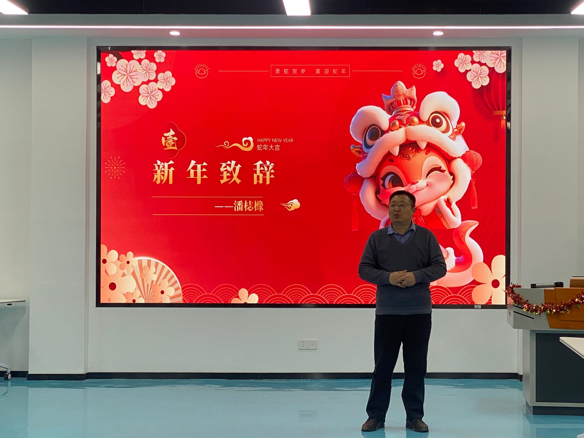 院长潘梽橼发表了新年致辞,他高度评价了全院教职工在过去一年中的辛勤工作和取得的辉煌成就,并对未来的发展方向进行了展望。同时,他也对全体教职工寄予厚望,期望在合格评估这一年中,大家能够持续加强学习,在各自的岗位上努力奋斗,为学院的发展贡献自己的力量。
