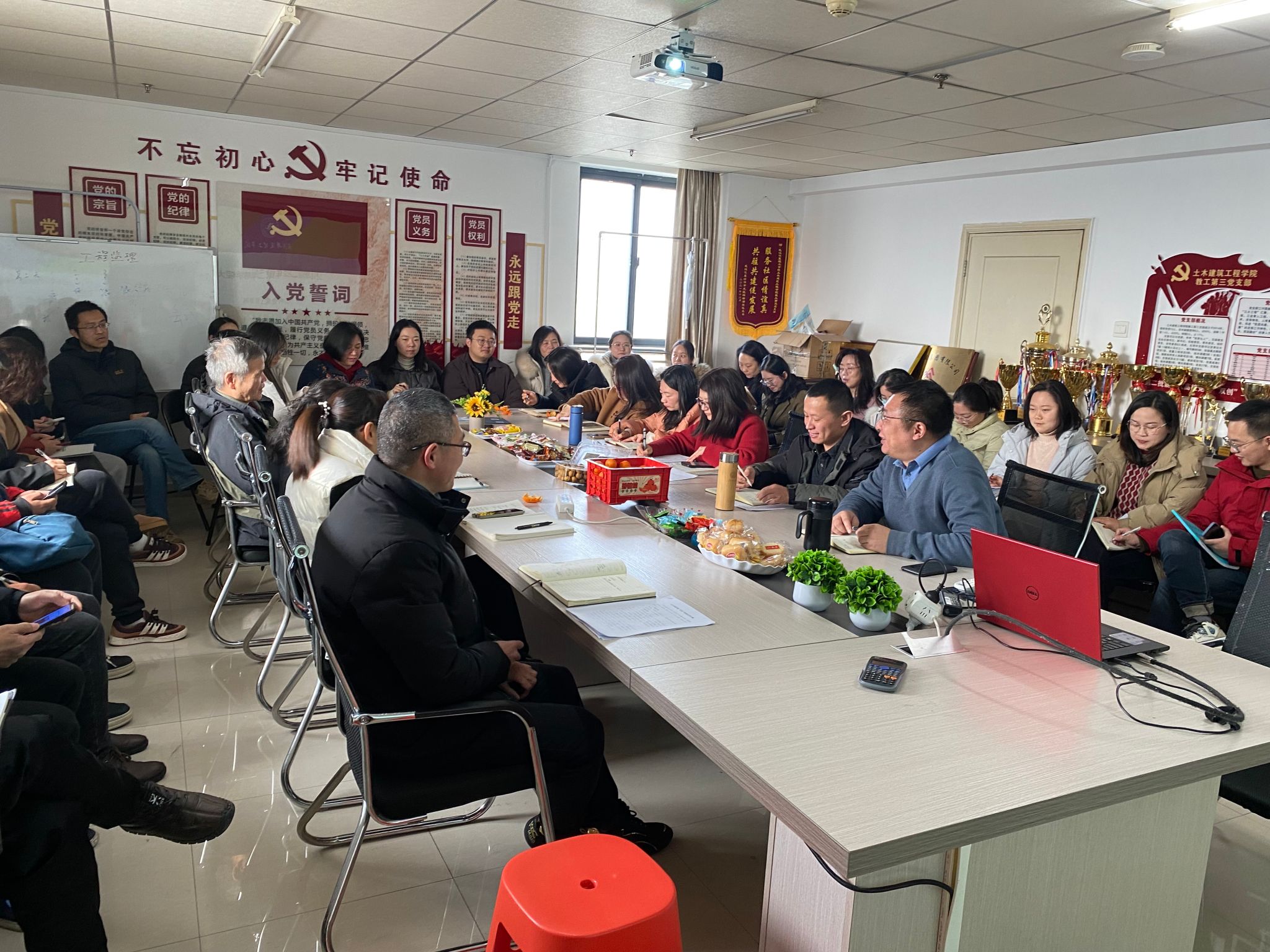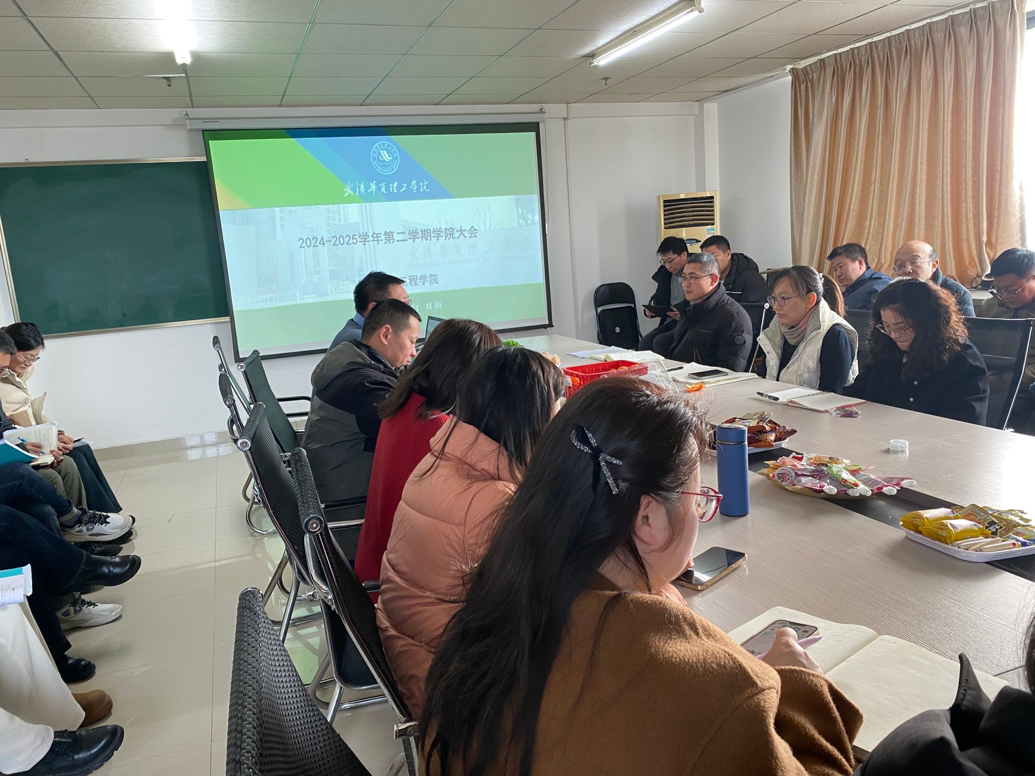 2025年2月5日上午10点,土木建筑工程学院在综合楼1021会议室召开了全院教职工大会,布置新学期的相关工作。本次会议由院长潘梽橼主持,副书记郝志康、副院长朱韶茹、靳帮虎以及全体教师出席。