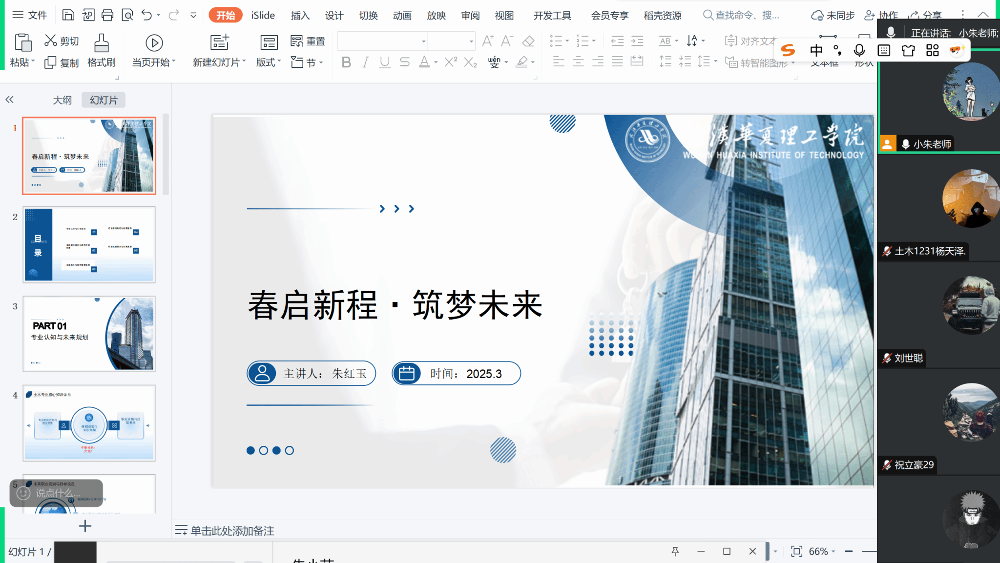 2025年3月31日晚19:00,土木建筑工程学院力学课部教师朱红玉为了帮助组内同学们更好地规划学业与职业,给所带学生开展了一次主题“春启新程-筑梦未来”的主题组会。会议由朱红玉老师主持,参会的有土木22级和23级的8位同学。