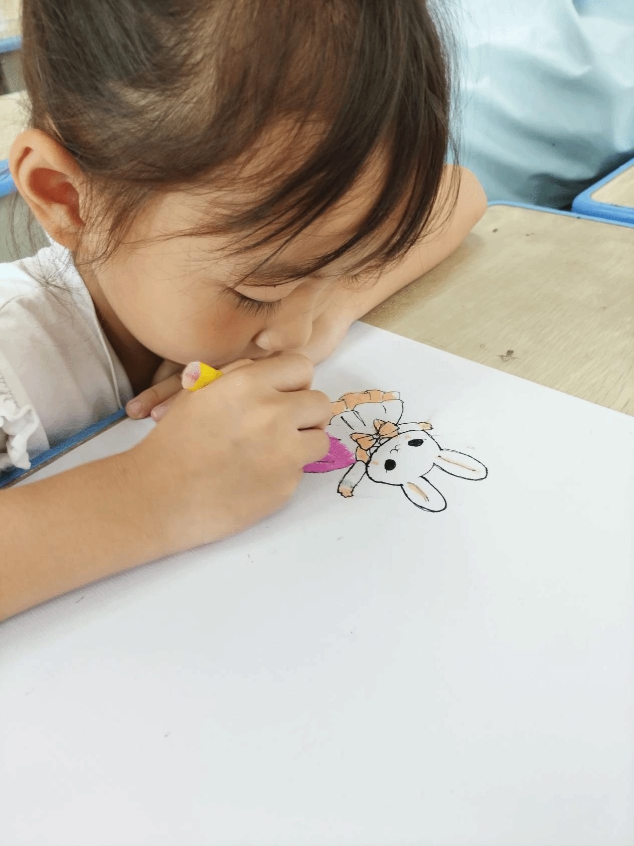 课堂上,孩子们的热情格外高涨。有的小朋友趴在桌上,在画纸上尽情挥洒色彩,小动物、冰激凌、卡通人物跃然纸上,线条虽简单却满是童真;有的则拿起画笔在纸盘上创作,圆圆的盘子成了独特的“画板”,他们用稚嫩的笔触勾勒出心中的小世界,每一笔都藏着天马行空的想象。