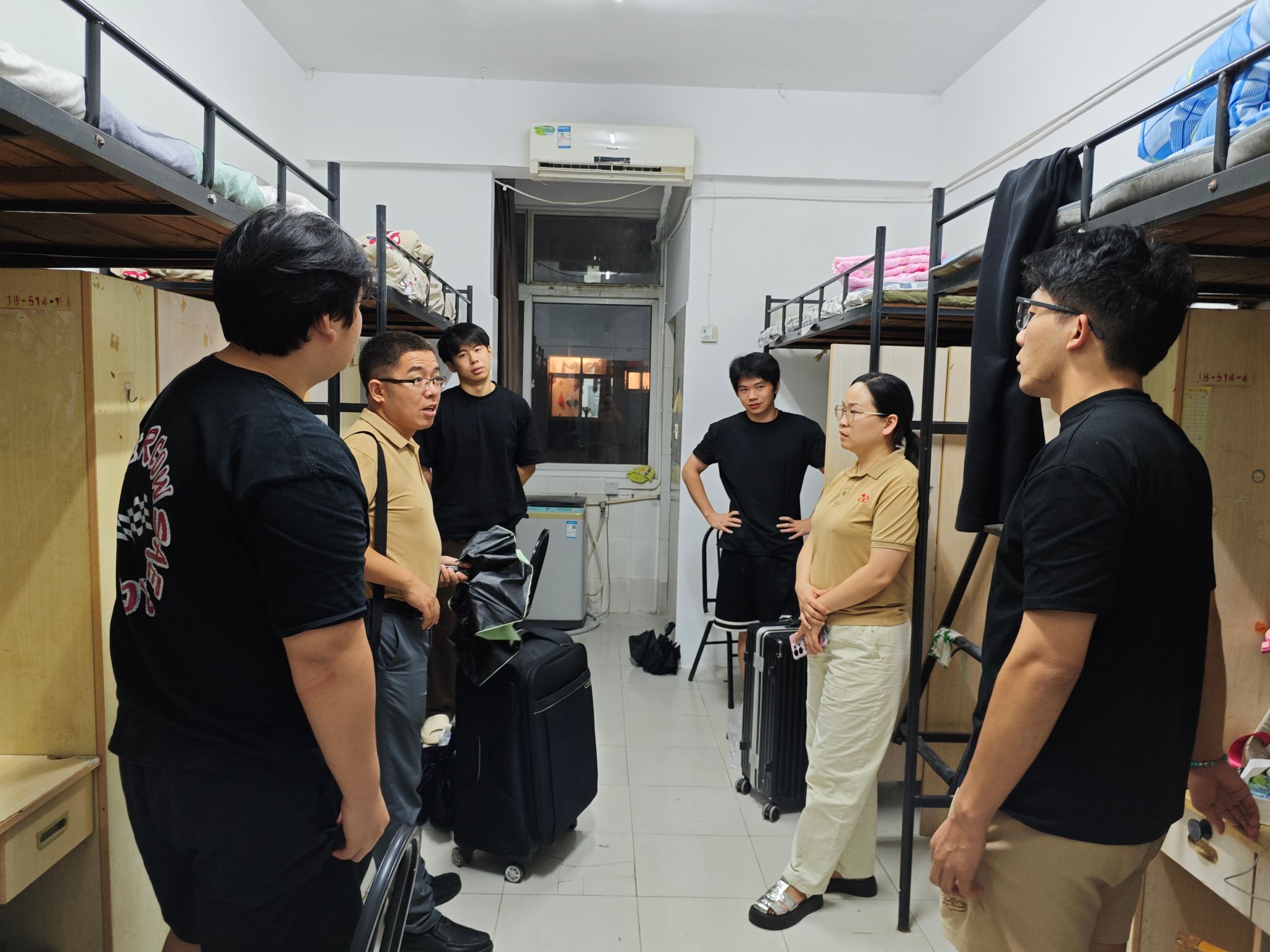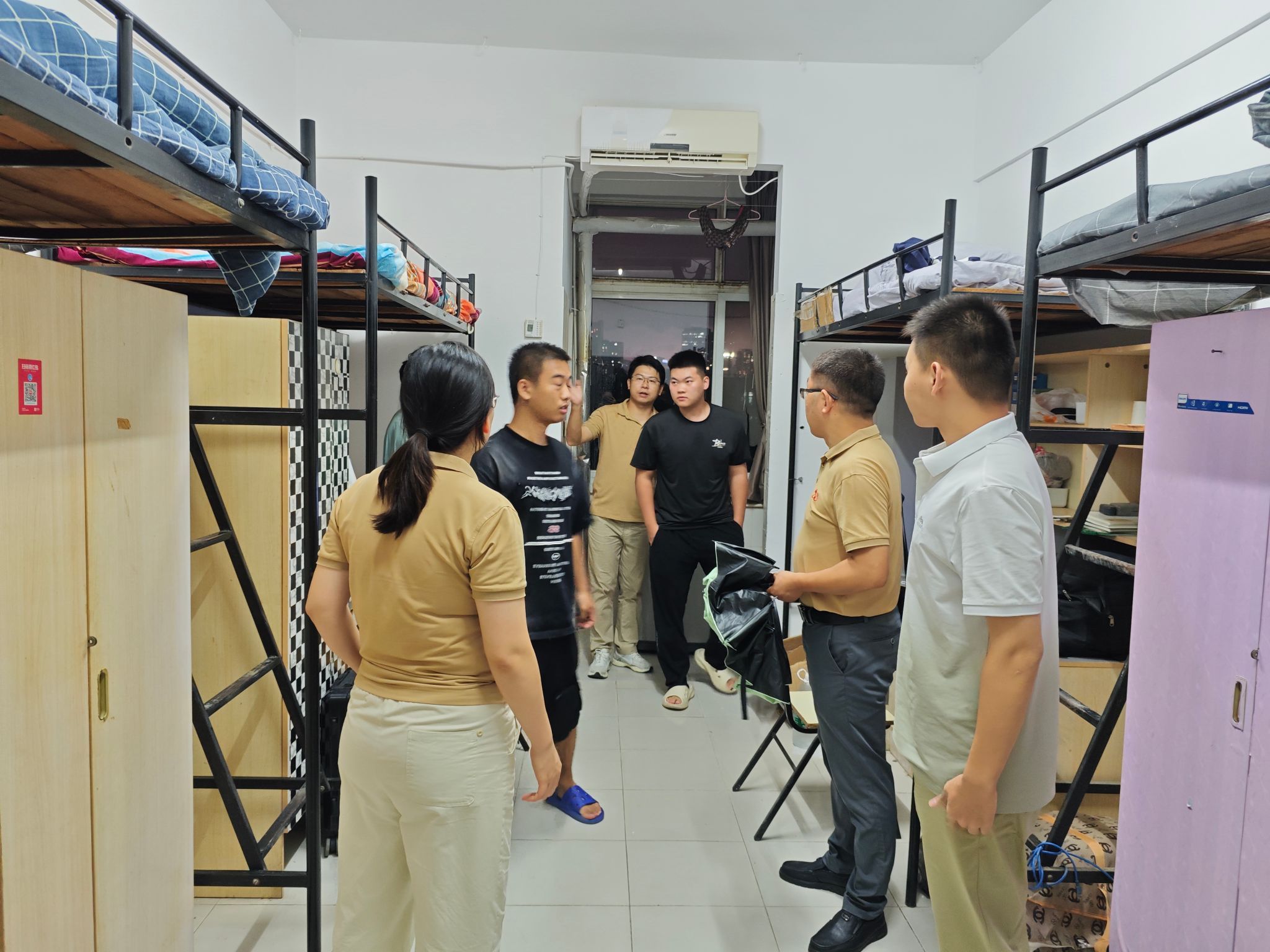 2025年8月30日,武汉华夏理工学院土木建筑工程学院专升本迎新活动圆满结束。当天晚上,学生事务部副部长关宏达、学生事务中心主任樊策己,土木建筑工程学院党总支副书记徐双立以及全体辅导员,共同走访了新生专升本的全部寝室,对新生进行了亲切的慰问。