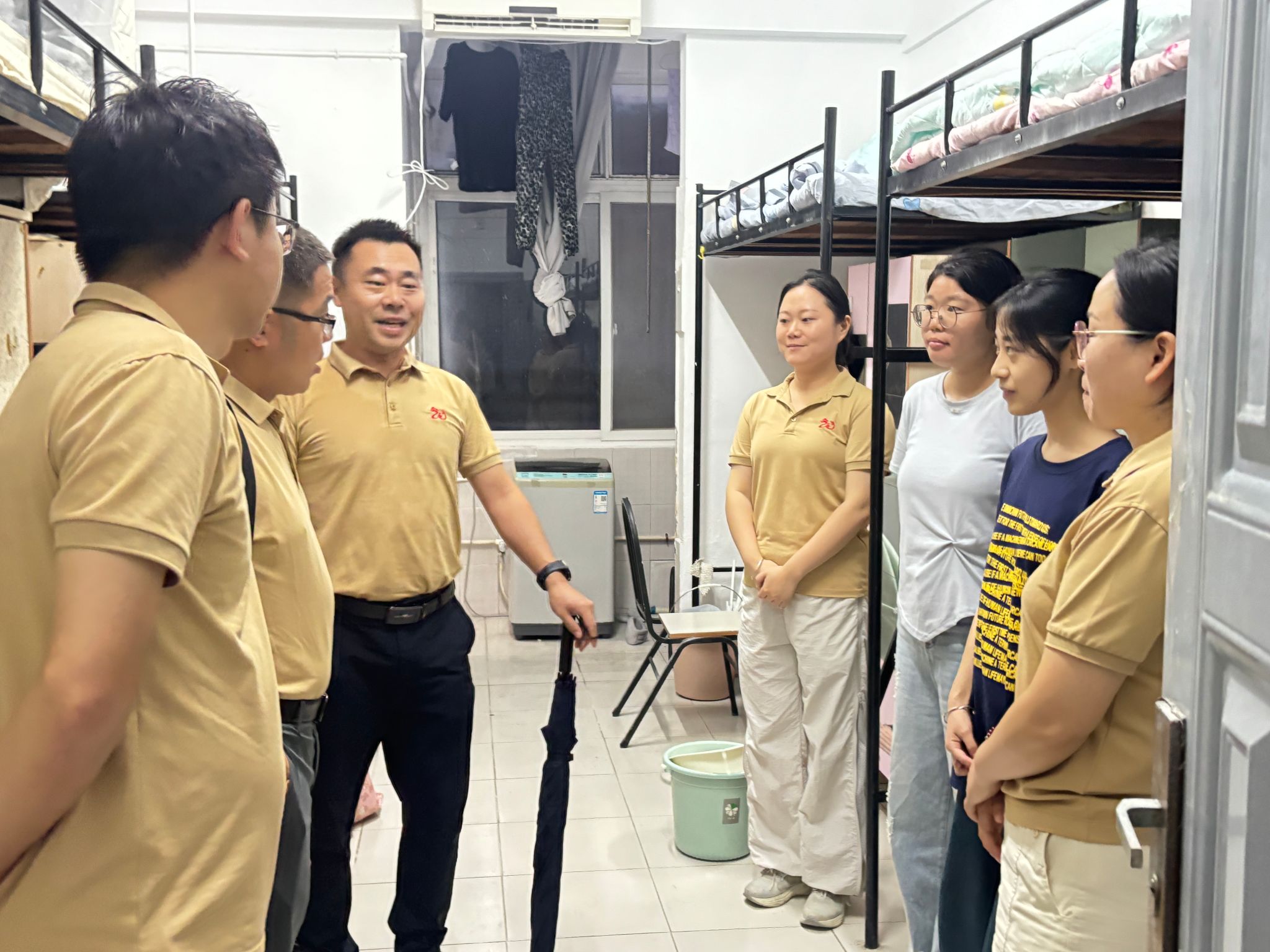 此次走访活动,旨在深入了解新生的入住情况,及时解决他们在生活和学习上的困难,传递学校的关怀与温暖。老师们先后走访了男生宿舍1号楼和女生宿舍4号楼。每到一处,老师们都与新生们亲切交谈,询问他们的适应情况,了解他们的需求和困惑。