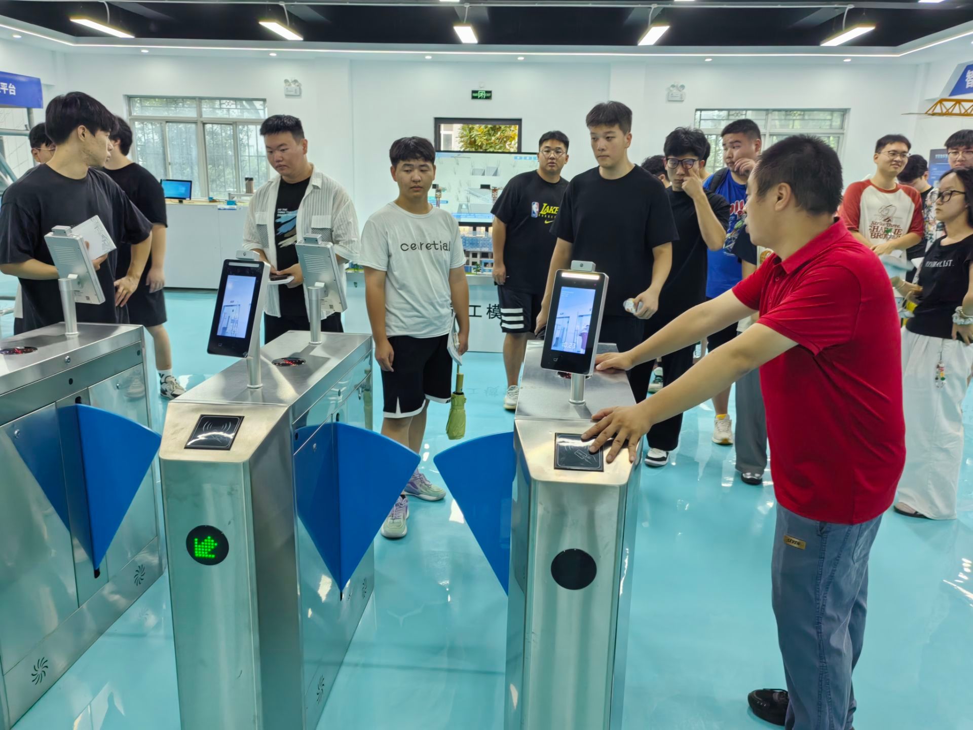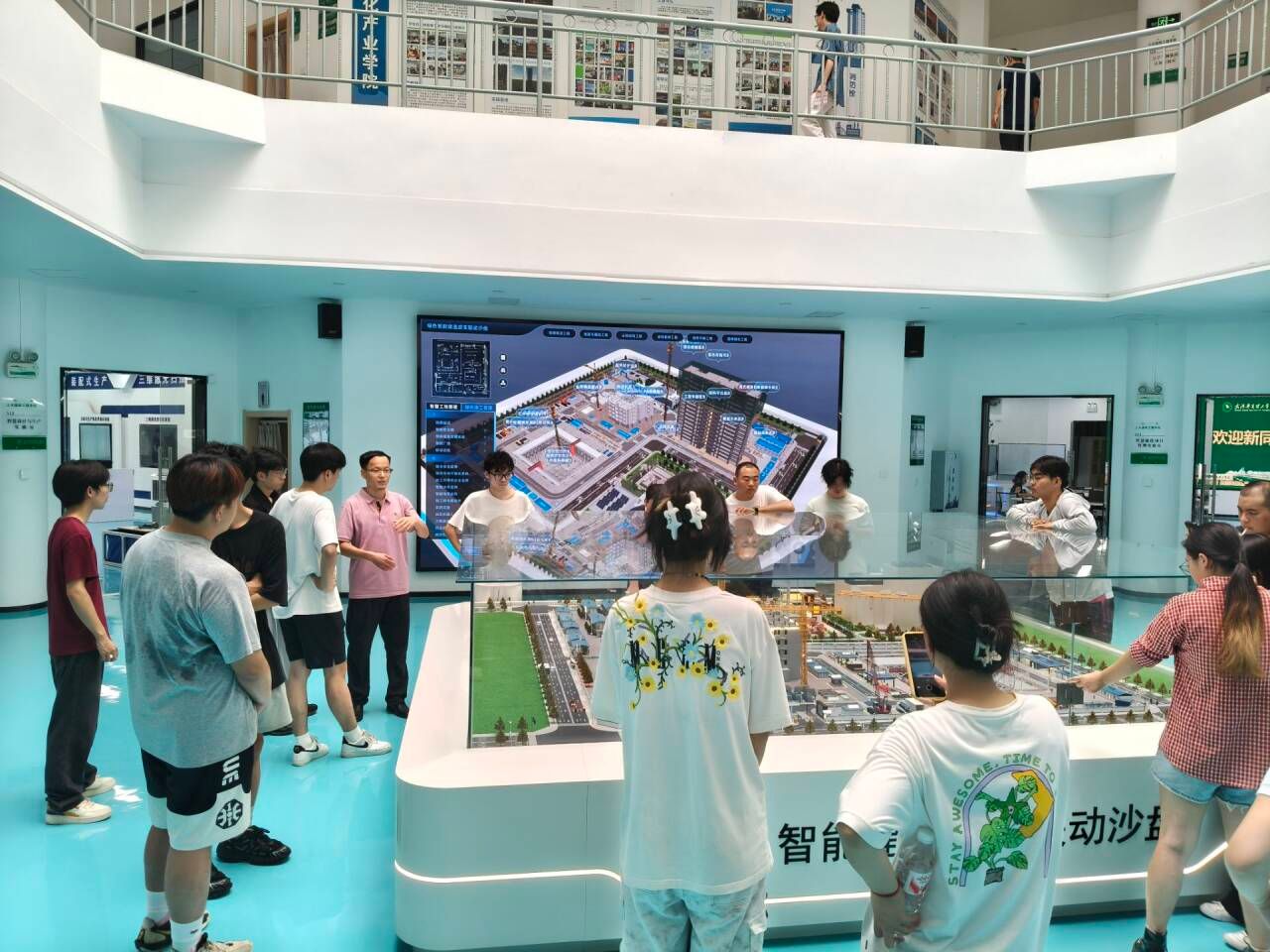 然后学生们按班级跟随实验老师逐一参观了一楼的智慧建筑实训中心、全生命周期智慧建造演示区、施工安全VR教育区等。在参观过程中,每个老师分别介绍了各区域的学习功能、主要设备、服务的课程与专业,并邀请新生们体验参与,学生们也积极地向老师请教提问,对未来的课程学习和实验室课程产生了浓厚的兴趣。