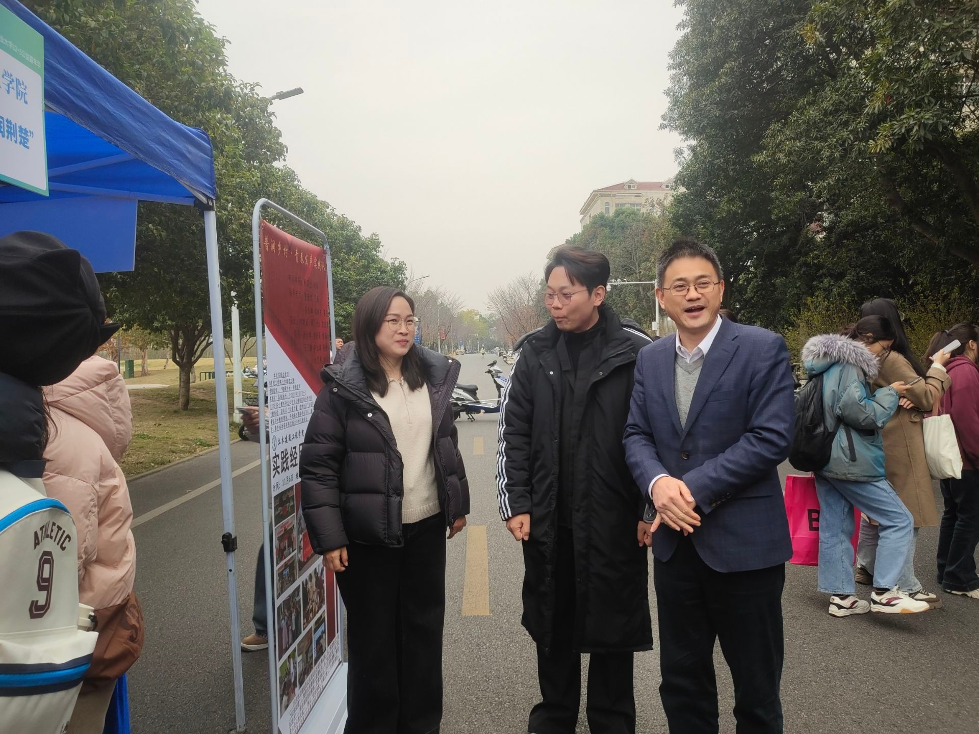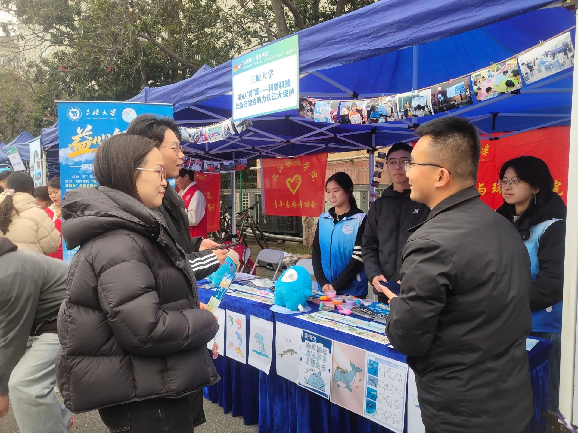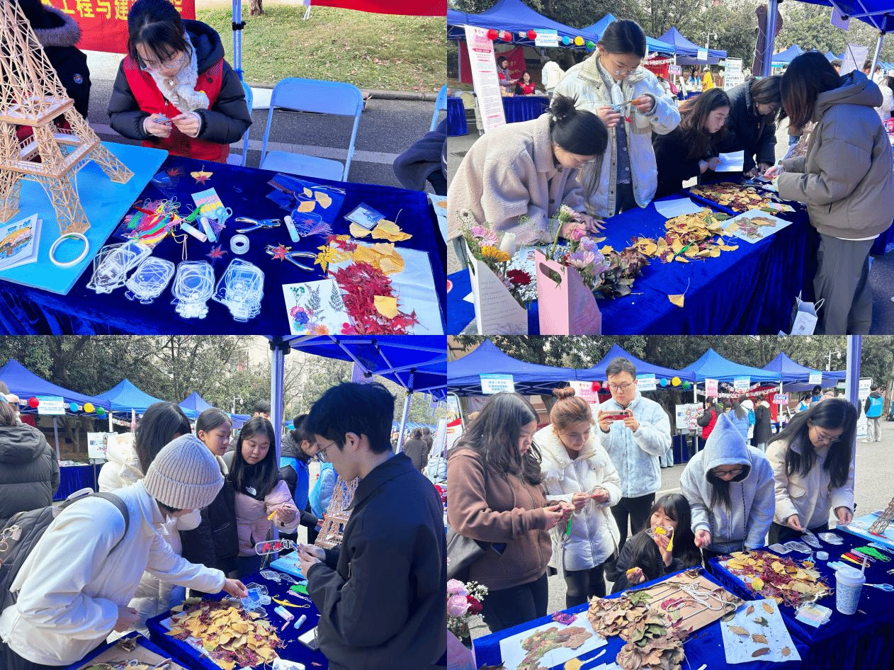 在公益集市展区,我校展位成为焦点。核心展台上,秋叶拼贴的微缩建筑模型将土木工程专业知识与自然美学完美融合;图文展板清晰呈现完整公益闭环;“三分钟秋叶拼贴”互动体验区人气高涨,成为跨校交流的友好平台。