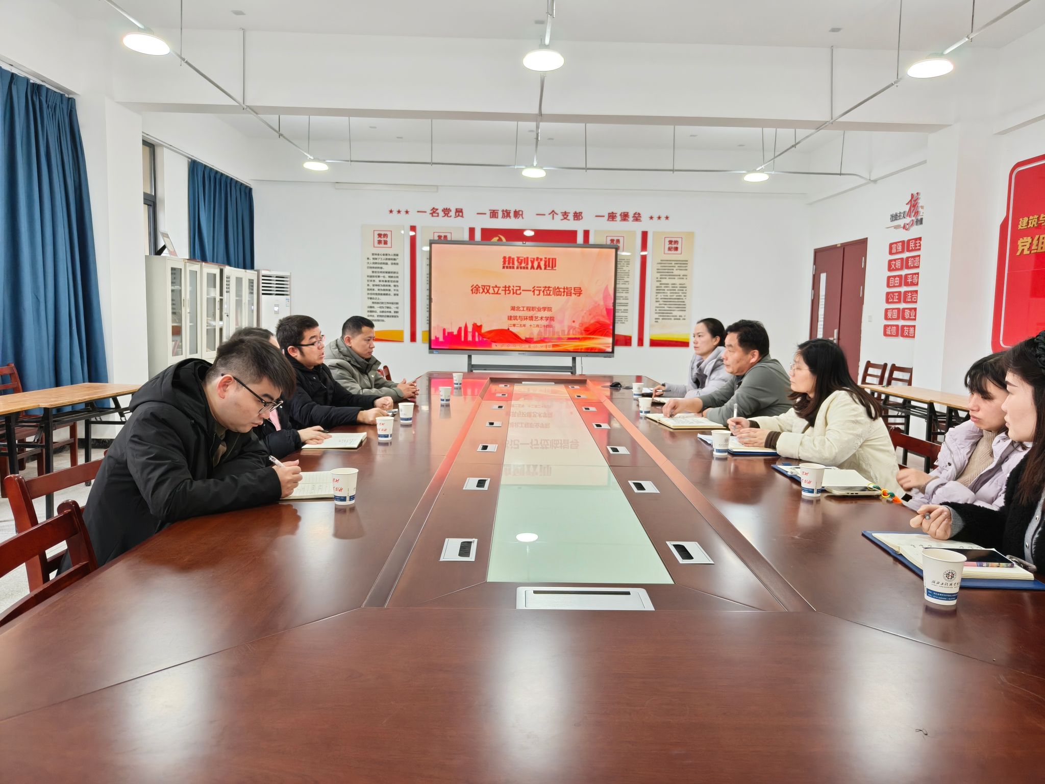 12月24日上午,调研团队抵达湖北工程职业学院建筑工程学院,双方围绕专业转型升级、产教融合等议题展开交流。该院党总支顾书记重点介绍了党建思政、专业建设、人才培养及招生就业情况,靳帮虎副院长介绍我院产业学院的运行情况,表示将进一步加强交流合作。