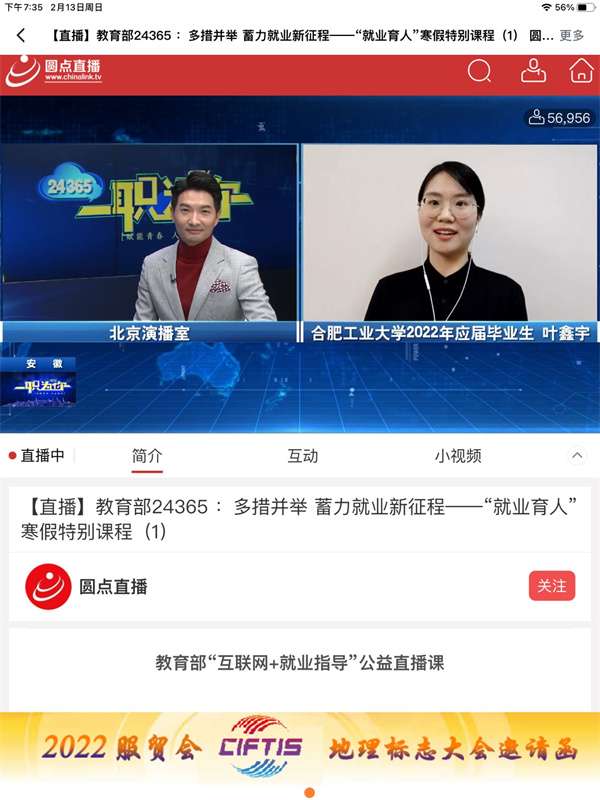 2022年2月13日晚7点,土木建筑工程学院组织师生准时在线收看学习教育部24365组织的就业公益直播课。