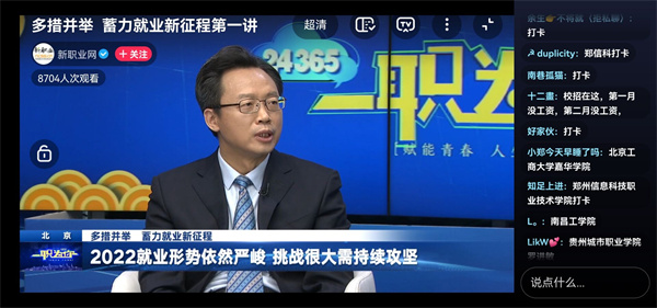 据了解,本期课程由教育部高校学生司指导,全国高等学校学生信息咨询与就业指导中心主办,中国教育电视台、万学慕课协办。邀请教育部材料化工行业就指委副主任委员、就业形势与政策专家组副组长、北京化工大学党委副书记宋来新做客直播间,带来主题为《多措并举 蓄力就业新征程——“就业育人”寒假特别课程》。