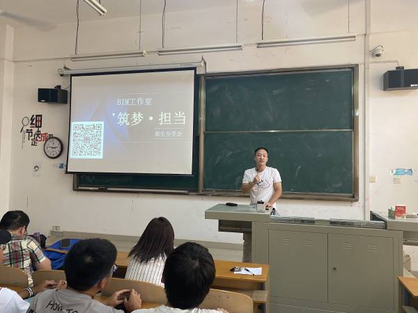 2021年9月27日下午2点,土木建筑工程学院举办的BIM工作室分享会在教学楼2-408教室举行。学院院长、BIM工作室负责人潘梽橼、BIM工作室执行负责人朱韶茹、BIM工作室指导老师李林森及胡倩应邀出席,全体2021级新生参加,分享会由学工办主任潘晶主持。