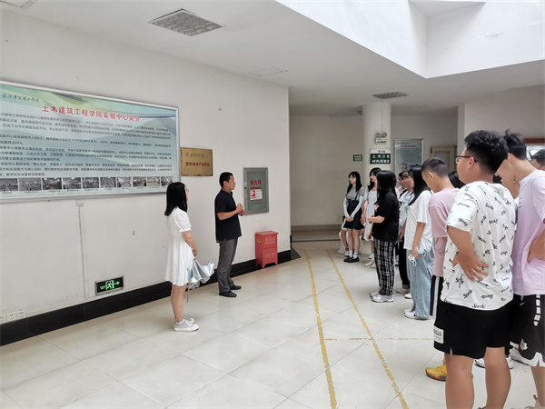 2021年9月15日8:30,土木建筑工程学院对大一新生进行专业教育并带领学生们参观实验室。