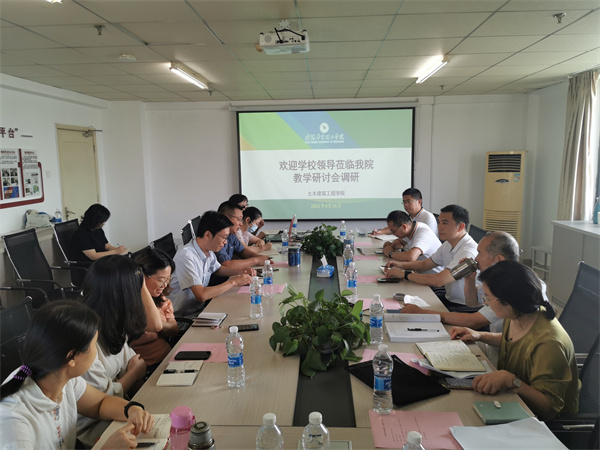 2021年9月16日上午8点半,学校常务副校长杜辉、副校长丁成忠、院长助理李猜、胡水兵、赵杨,后勤保障部招投标采购中心主任黄大伟一行莅临我院就暑期教学研讨会情况进行专题调研。学院院长潘梽橼、党总支书记毛峥毅、副院长杨易、院长助理兼实验中心主任靳帮虎、各系部负责人和教学行政办主任参加。会议由党总支书记毛峥毅主持。