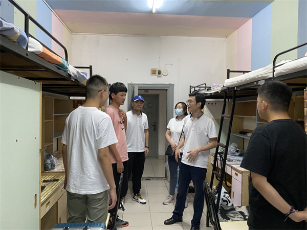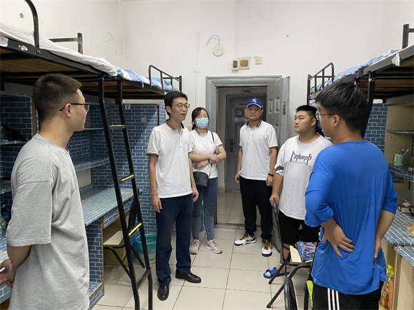 2021年9月11日下午,土木建筑工程学院党总支书记毛峥毅、学工办主任潘晶、2021级辅导员杜琛一行来到2021级新生宿舍,与刚刚入学的新生们亲切交谈,深入走访并详细了解新生的住宿和适应情况。