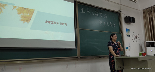 2021年9月8日下午3点,土木工程系全体老师在2-208教室与今年9月初入校的19级土木工程专业专升本新生见面。土木建筑工程学院党总支书记毛峥毅应邀出席。见面会由土木工程系副主任何桥敏主持。