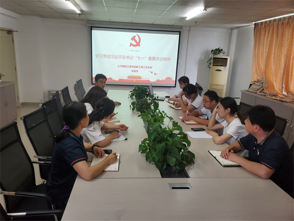 2021年7月7日中午,土木建筑工程学院教工第三党支部在综合楼1021会议室召开组织生活会,学习习近平总书记“七一”重要讲话精神。会议由支部书记张城芳主持,党总支书记毛峥毅和支部全体教师党员参加。