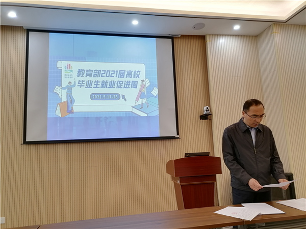 会上,李主任传达了《武汉华夏理工学院 2021 届毕业生就业促进周活动方案》。他指出,5 月 14 日起,学校就开始有序推进 “就业促进周”工作,同时利用毕业生回校毕业答辩、毕业生体检期间采用标语、 展板等形式强化广大毕业生就业择业观引领,在全体毕业生中形成“想就业、要就业、就好业”的青春主旋律。