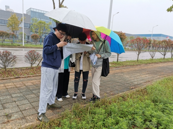 2021年4月24日,我院杨亨、吴乐两位老师带领华夏建规工作室三名学生冒雨驱车前往武汉市蔡甸区,开展全域国土综合整治项目的实地调研,拟通过现场学习为华夏建规工作室的应用科学研究课题搜集素材。调研项目区位于嵩阳大道沿线,是蔡甸区正在推进的乡村振兴示范带核心区域,北靠后官湖国家湿地公园、南以常贵大道为界,紧临蔡甸经济技术开发区中德产业园。