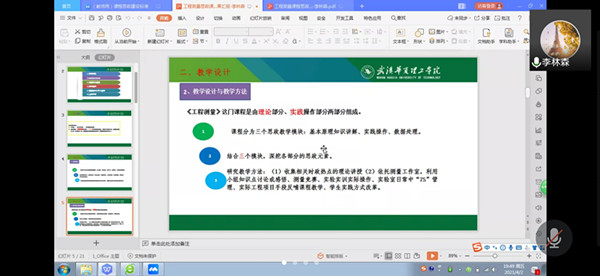2021年4月2日晚上7点,土木工程系全体教师通过腾讯会议平台进行了集体培训。本次会议由系主任吴秀丽主持,主讲人是土木工程系课程思政建设的先行者——李林森老师。