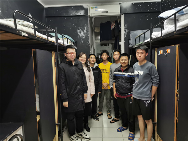 为确保学校安全稳定,保障学生人身安全,2021年3月9日晚,土木建筑工程学院全体辅导员在学工办主任潘晶的带领下到宿舍进行卫生及安全检查。