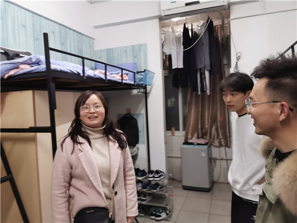 此次排查工作具有针对性和目的性,主要检查学生宿舍卫生情况和外宿情况,强调宿舍安全用电等问题。重点排查宿舍内存放和使用违章电器、违规物品等违规违纪现象,同时检查宿舍空气是否清新、物品是否摆放整齐、垃圾是否及时清理、地面清洁情况等,对存在问题的寝室提出建议,并要求尽快整改。在本次宿舍检查过程中,学工办主任潘晶就学生学习生活状况和他们亲切交谈,提醒学生注意寝室通风、宿舍电器安全使用,宿舍设备损坏可及时报修等事项,现场气氛融洽,更像是一次师生间的日常交流。
