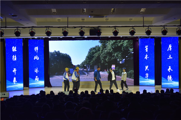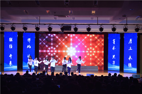 历时两个多月的精心准备,丰富而生动的节目为全体观众带来了一场视听盛宴。晚会由街舞社的劲爆开场舞《Happy dance》拉开帷幕。紧接着是由男生们带来的歌曲《想见你》,让场下观众呼声不断,使得晚会气氛热情高涨;情景剧《但愿人长久》寓意十足,真情流露;拉拉队带来的舞蹈《Produce11》,更是让同学们激情昂扬;还有悠扬婉转的笛箫联奏《大鱼》向观众传播着爱的福音;校园素材小品《华夏借贷风云》更是幽默诙谐,笑点不断。