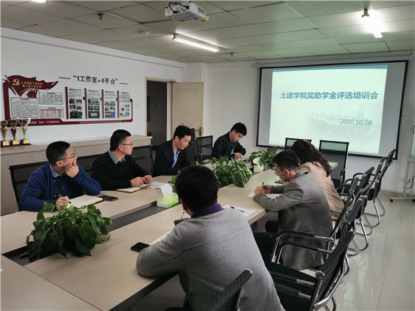 为规范奖助学金评选流程、深入落实学校奖助学金评选政策,确保奖助学金评选工作顺利开展。2020年10月28日下午,土木建筑工程学院在综合楼1021会议室举行奖助学金评选专题培训会,本次培训会由辅导员杨柳主讲,学院党总支书记毛峥毅、学工办主任潘晶、党总支秘书吴振琦、辅导员吴乐、张磊、程鹏、王磊参加。