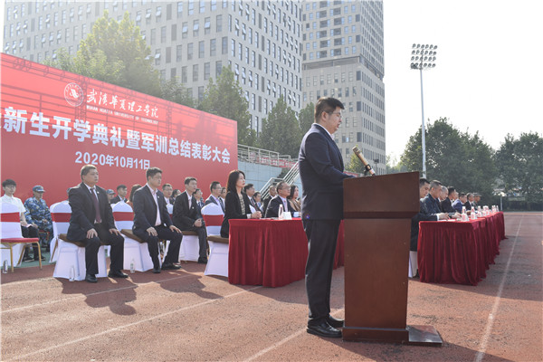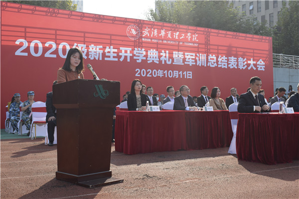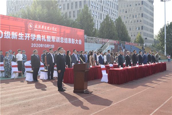 2020年10月11日上午9点整,武汉华夏理工学院举行2020级新生开学典礼暨军训总结表彰大会,土木建筑工程学院大一新生新生参加。本次大会由常务副校长杜辉主持,执行校长郭彪、党委书记丁德智、创始校长吴永桥、常务副校长杜辉、副校长丁成忠、党委副书记、副校长李海民、军训总教官詹耀、教官代表和各学院领导应邀出席。