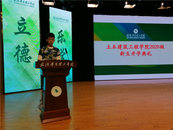 典礼的第三个环节,由学生代表耿天赐同学发言,他与2020级新生共同分享了个人经历,希望同学们能合理利用时间,勇于尝试新事物。最后,王子文同学代表新生发言,表达了对大学生活的憧憬与无措,并希望和大家一起努力学习,携手共进,最终成为一个对社会有用的人。