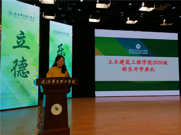潘主任代表学院对2020级新生的到来表示欢迎,并介绍了到会领导和老师。随后,杨院长在典礼上致辞,他指出,2020年是非常不平凡的一年,为战胜新冠病毒,武汉人民付出了巨大的牺牲。学校也建立了康复驿站,为抗疫作出了贡献,并被评为湖北省抗击新冠病毒先进集体。能够取得抗疫的阶段性胜利,要感谢党中央的英明领导,感谢抗疫逆行支援武汉的医务工作者和志愿者们。接下来,他从专业设置、师资力量、实验设施、竞赛成绩、考研就业等方面介绍了学院的基本概况。杨院长强调,从高中到大学,是一个重大转折,要想顺利完成大学学习,必须要树立学习目标,掌握学习方法,培养独立生活能力和学习习惯,他呼吁大家要热爱国家,把自己的前途命运与祖国紧密联系在一起,为国家的繁荣富强而奋斗。