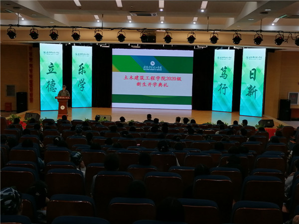 2020年9月30日上午8:50,我院2020级新生开学典礼在综合楼学术报告厅举行。典礼由学工办主任潘晶主持,院长杨和礼教授、副院长杨易、党总支书记陈伟、院长助理靳帮虎、城乡规划系主任密新武、团总支副书记杨柳、2020级辅导员王磊、2019级辅导员程鹏出席,200余名2020级新生参加。