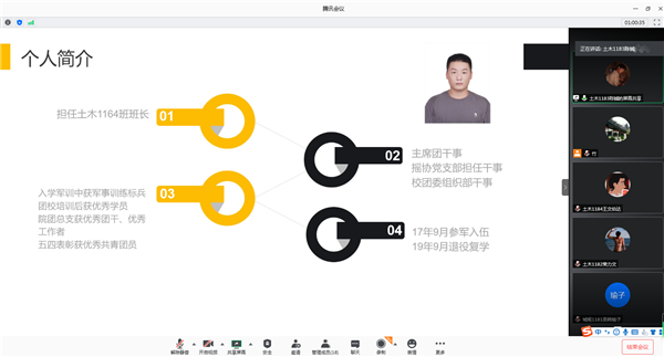 2020年7月14日上午10点,土木建筑工程学院2020级新生学长班主任竞聘会在腾讯会议平台举行,参加本次大会的评委包括学工办主任潘晶、辅导员张磊、吴乐、杨柳等,共有14名大三的学生参加了本次竞聘。