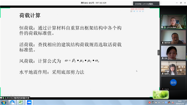 2020年5月10日上午8点半,土木建筑工程学院通过腾讯会议平台举行2020届毕业设计(论文)答辩。答辩按照专业和指导老师分为10个小组,其中工程管理1组、工程造价2组、城乡规划2组、土木工程5组,每组设1名组长,2名评委和1名答辩秘书。教学办主任袁健、学校督导余正建、刘高潮等老师应邀参加,260余名毕业生参与答辩。