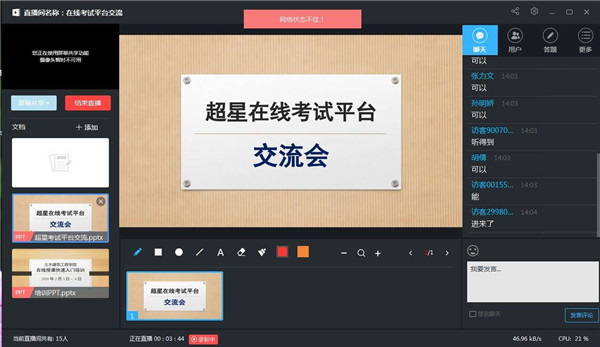 2020年4月25日上午,土木建筑工程学院通过超星学习通软件举行超星在线考试平台交流会,会议由学院副院长杨易主持,来自土木工程系、工程管理系等各系部和学工办的教师参加。