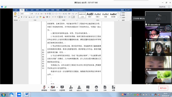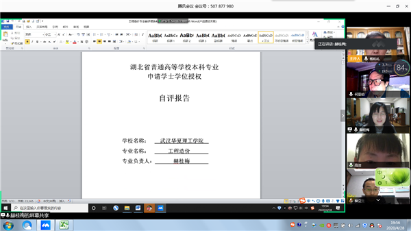 2020年4月28日,武汉华夏理工学院通过腾讯会议平台组织召开学校工程造价专业学士学位评估授予权评审会,会议由武汉大学何亚伯教授主持,专家组成员包括武昌理工学院柳立生教授、文华学院高洁副教授、学校土木建筑工程学院吴秀丽副教授、汪芳副教授。我校土木建筑工程学院院长杨和礼教授、副院长杨易副教授、工程管理系主任赫桂梅副教授、副主任李珊副教授和工程管理系全体教师参加。