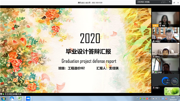 答辩小组成员就毕业设计(论文)及专业相关的基本理论、基本知识和基本技能等内容提出不少于3个问题,采取即问即答、先问后答等形式,每个学生根据自己的作品作答,每人答辩总时长为20分钟,全过程进行录屏。