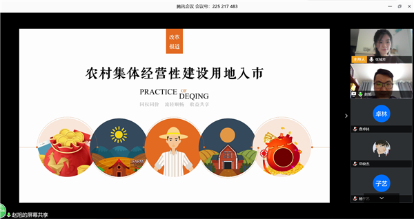 会上,赵旭老师将内容分为四大板块,首先,他向大家普及介绍了集体经营性建设用地入市的背景,随后他逐项列举德清县能走在全国前列的基础工作和集体经营性建设用地入市的德清实践内容,最后赵旭老师为同学们讲解了集体经营性建设用地能够“利修法”、“惠百姓”的成效。他指出,德清县是全国首宗集体经营性建设用地入市、首本不动产权登记证书、集体经营性建设用地使用权抵押贷款第一单的城市。通过集体经营性建设用地入市的改革举措,德清县农村经济增长迅速、村集体经济实力显著提升、农民群众的获得感十足,同时也为国家立法提供了宝贵的经验和意见。